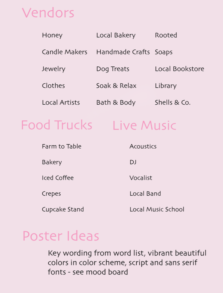 To organize my ideas, I created a mood board that captured the festival’s aesthetic: pastels, floral textures, organic shapes, and a clean, uplifting feel. This mood board guided every decision that followed and ensured the campaign stayed visually consistent.