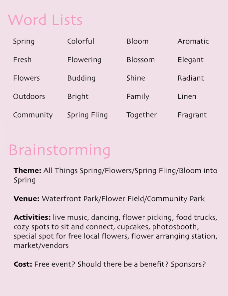 Bloom Festival was a mock campaign I created for an ARTS 222 Class. I was to create an event and develop a full advertising campaign for it from the beginning brainstorming process all the way to a finial advertising proposal.